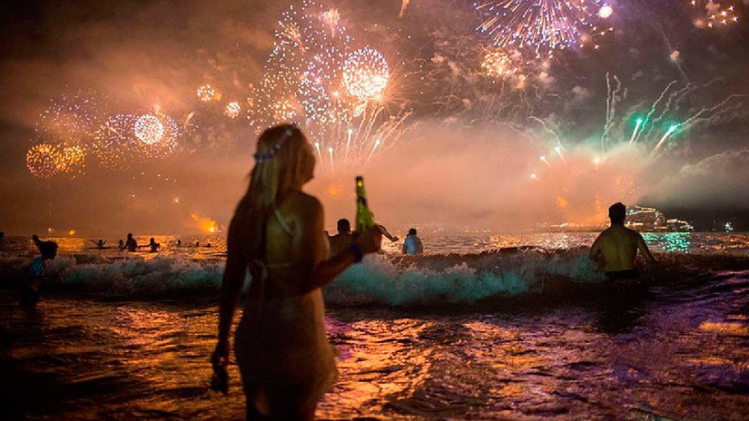 - Atardeceres y amaneceres llenos de viajeros esperando el nuevo año en la arena.